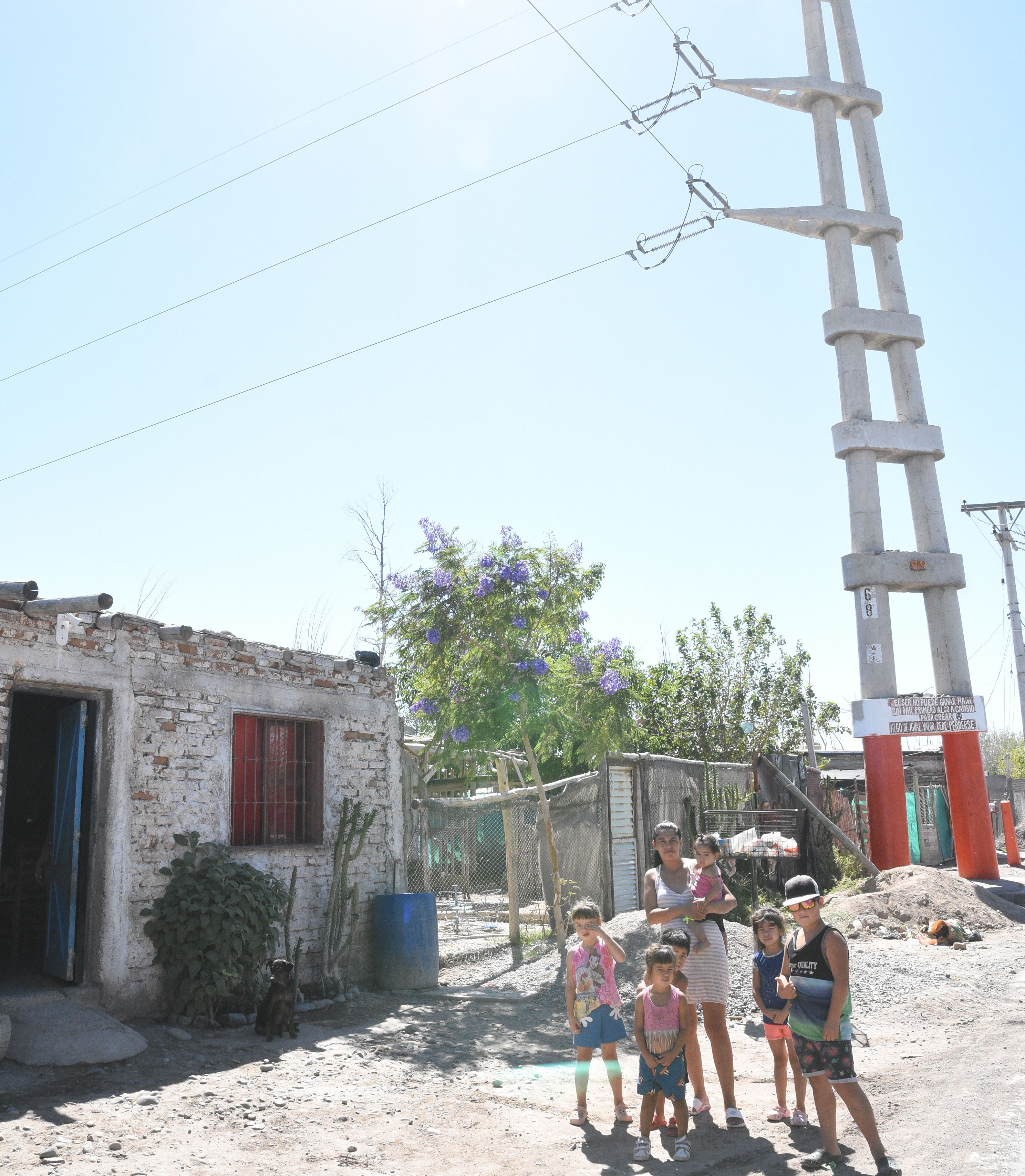 En calles Tulum y El Gringo, Villa Obrera, Chimbas, se encuentra una imponente torre de línea eléctrica de alta tensión. Debajo de la misma, 4 familias edificaron sus viviendas hace 6 años. Una de ellas ocupa dos de estas casas, y fue la única que quiso hablar escuetamente sobre su situación. "Hace 6 años mi mamá compró parte de este terreno a un vecino y construyó la casa al lado de la que se hizo mi hermano para vivir con su familia. No sabíamos que no se podía. Ahora nos dicen que nos tenemos que ir porque estamos ilegalmente y corriendo peligro. Desde que nos dijeron que estamos en peligro por la torre de energía, no dejamos que los niños salgan a jugar a la vereda", sostuvo Jenifer.