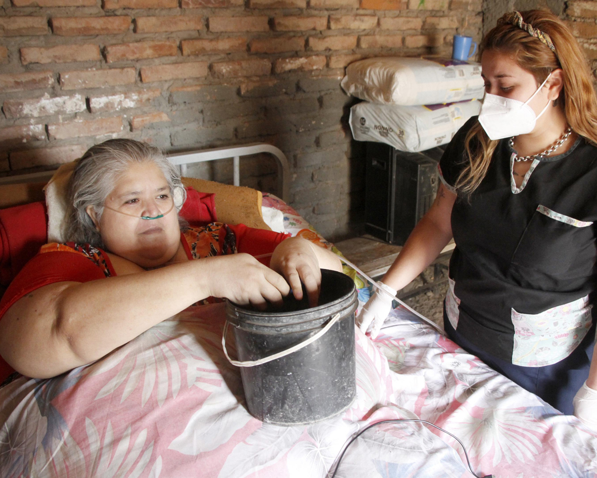 Casa no es lo único que necesita esta mujer. Ni siquiera tiene los elementos necesarios para su higiene personal y para curar las escoriaciones que le provocó estar tantos años en la cama y el no bañarse desde hace 4 meses. De todos modos, luce impecable y perfumada. Todo gracias a los sacrificios y esfuerzos que hace Milagros Argüello, la cuidadora domiciliara que la atiende (servicio que cubre la obra social que tiene Zulma) y a la que bautizó su "ángel guardián". Es que esta joven fue la que hizo pública la historia de Zulma en las redes sociales en busca de conseguirle ayuda. "Milagros me cuida 6 horas al día, y son las mejores horas que paso. Ella me higieniza todos los días con retazos de tela que trae desde su casa y jabón blanco para que no se me infecten las heridas. A veces también me trae verduras cocidas y hasta me lava la ropa en un tacho, tareas que no están incluidas en su trabajo, pero que lo hace por su gran corazón. Muchos de los cuidadores que trabajan en la misma empresa que ella no quieren venir a cuidarme por mi condición y las carencias que tengo. Pero ella sigue viniendo. Creo que Dios la puso en mi camino", dijo la mujer.