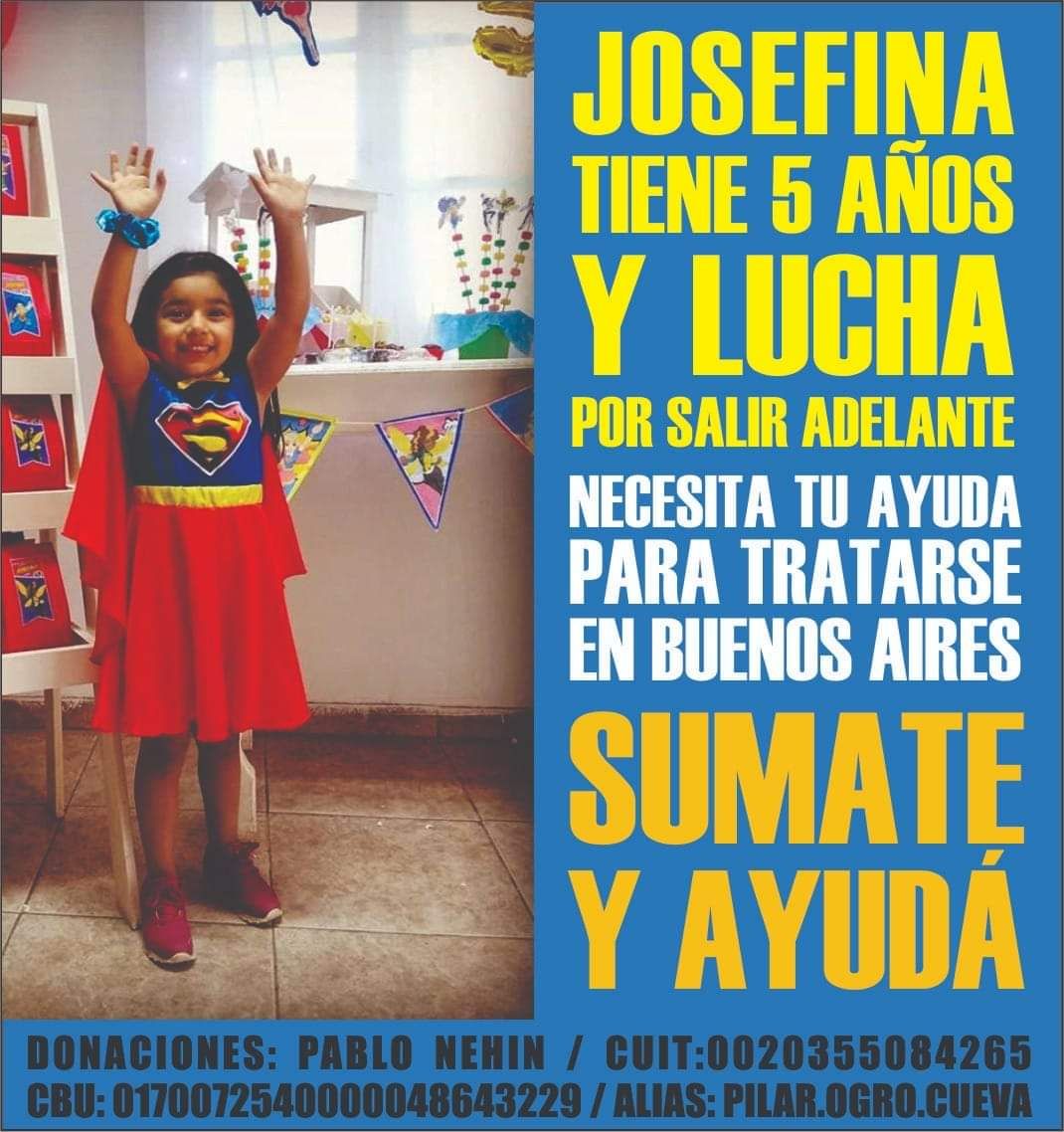 Por eso, los amigos del papá de Josefina empezaron a hacer circular una imagen de la nena con un número de cuenta en el que pueda depositar dinero quien lo desea.