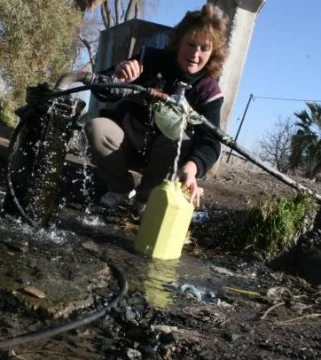 Doña Marcelina se arremanga hasta los codos para empezar con el lavado, mirando con tristeza el gallinero y el chiquero vacíos. Tuvo que regalar los animales a un pariente que tenía agua suficiente para mantenerlos. Con una jarra azul de plástico mide el agua que va a usar para lavar y para enjuagar. No tiene que desperdiciar ni una gota porque todavía le queda tomarse unos matecitos y preparar un machacado. Su nieto no pudo acarrearle agua en la madrugada antes de irse a trabajar. Y a ella no le dan las piernas para caminar más de 800 metros, cargando bidones.