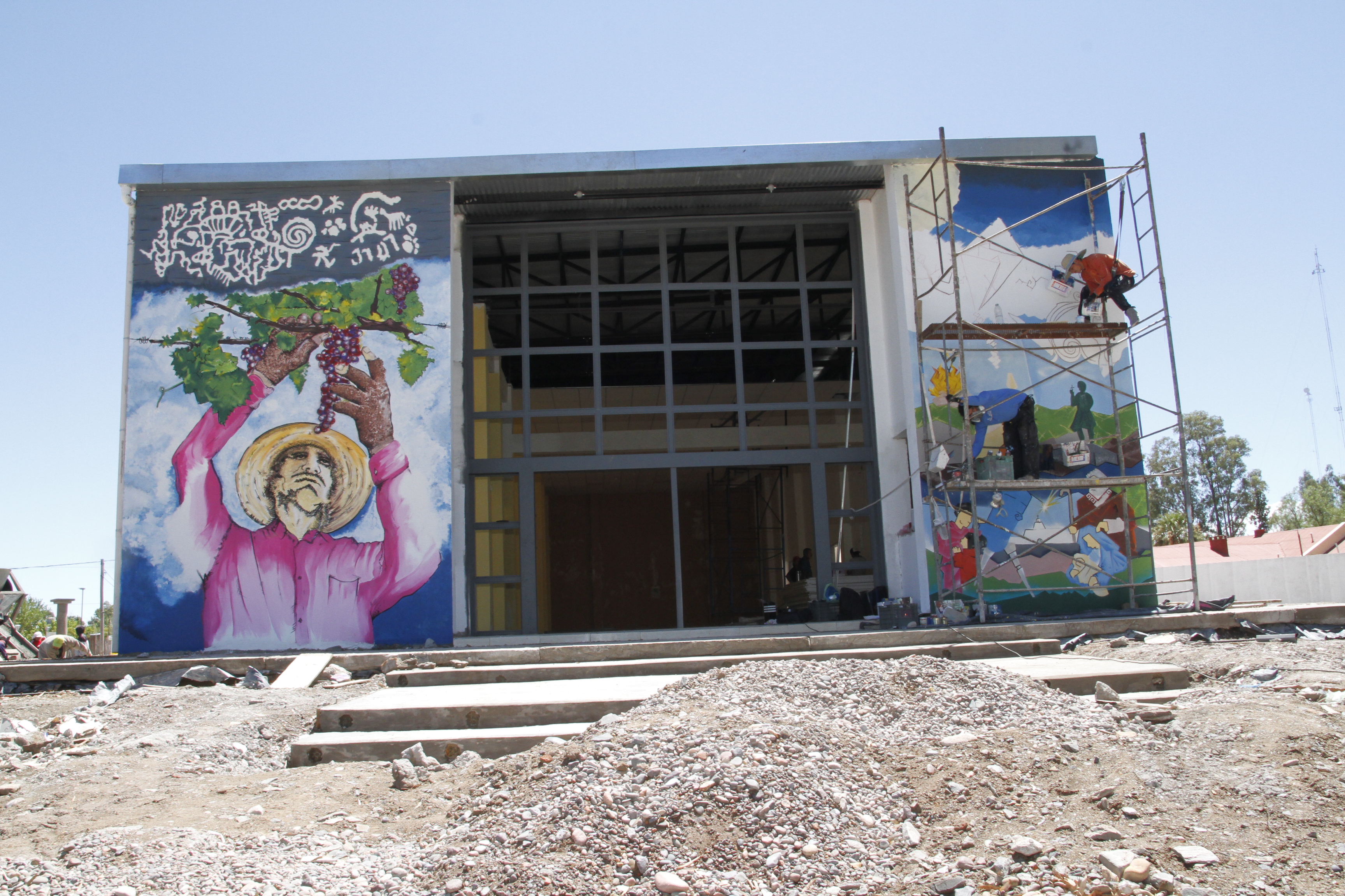 Pero no será el único artista que formará parte de la puesta en marcha de esta casa. También lo hará Iván Manrique, encargado de pintar los dos grandes murales que cubrirán las paredes externas y del frente del edificio. Ambos plasmarán la historia e idiosincrasia del pueblo. "Uno de los murales mostrará la zona de Pie de Palo con los jeroglíficos que contiene para mostrar nuestros antepasados, y un hombre cosechando que simboliza la actividad productiva del departamento. El otro mural resumirá parte de las actividades locales y para toda la familia como las peñas, los campeonatos de barriletes, el concurso del asado, todo enmarcado en el Complejo Turístico Religioso Ceferino Namuncurá", dijo Andino.