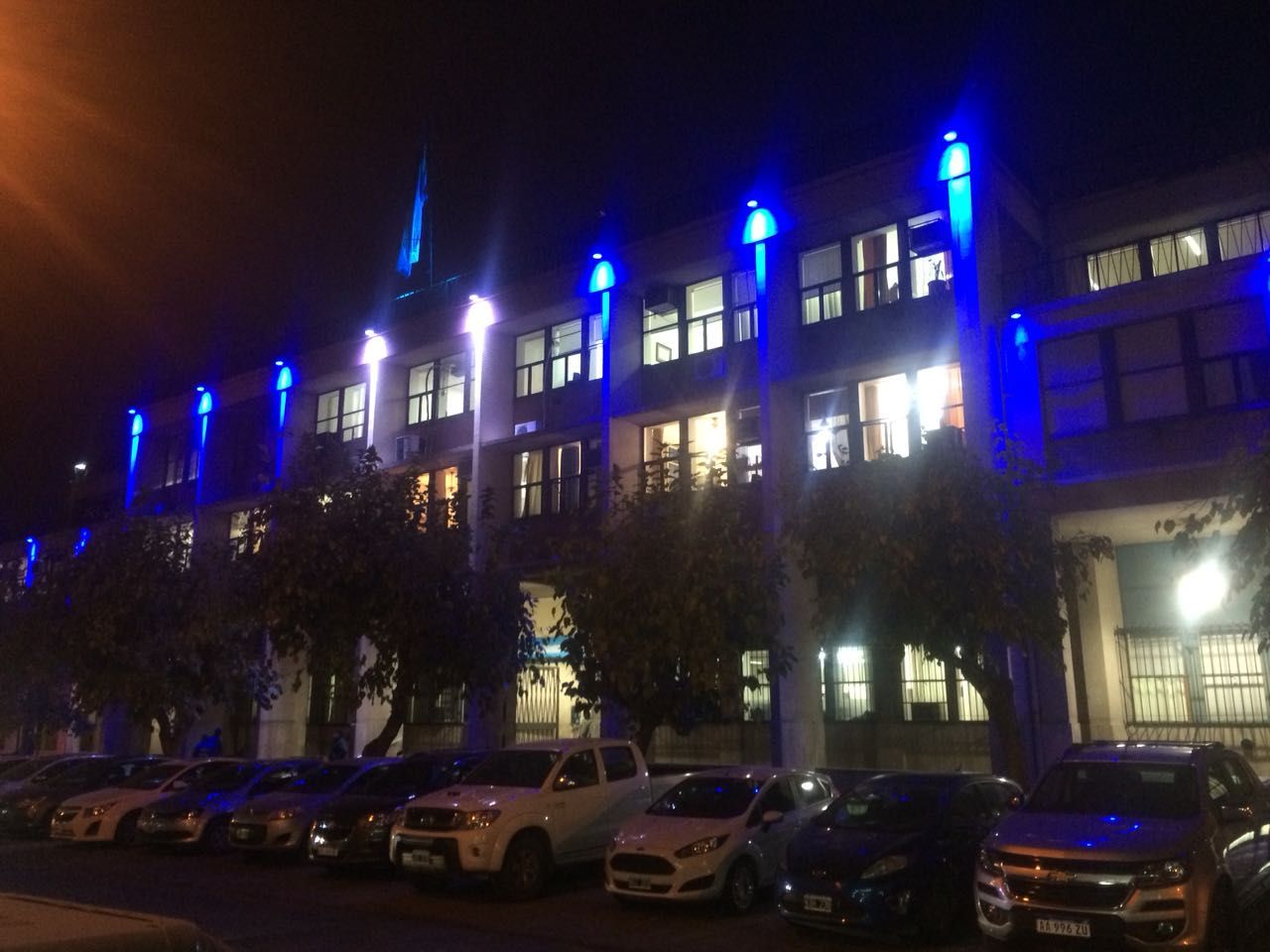 En la mañana de hoy el edificio de Tribunales amaneció iluminado de celeste y blanco como inicio de los festejos por la Semana Mayo.