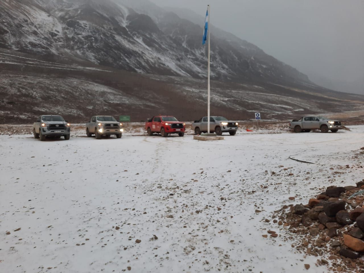 Este viernes, el emprendimiento minero Pachón, ubicado en la alta Cordillera calingastina, amaneció cubierto de blanco.