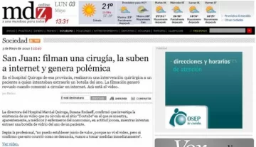 San Juan, 3 de mayo.- Distintos medios nacionales se hicieron eco del video grabado en el Hospital Marcial Quiroga. Los portales digitales de los medios graficos mendocinos, Los Andes y UNO, y el portal de noticias MDZ on line, reprodujeron la noticia. Como también el portal A las 7 , de Tucumán.