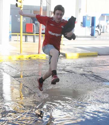 "Hay que cruzar los dedos para que no ocurra un accidente con víctimas fatales. Esto es más peligroso que circular por un camino de cornisa". El comentario lo hizo un hombre que se paró en la esquina de General Acha y General Paz para observar las maniobras peligrosas que la gente hacía para esquivar el agua. Un ciclista y un motociclista abandonaron la orilla para circular por el medio de la calle y evitar meterse al agua, pero sin percatarse que tras ellos venía un remisero que debió frenar de golpe. La frenada salpicó agua en todas direcciones, mojando a los peatones que en ese instante intentaban cruzar por el lugar.