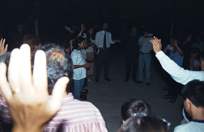 Uno de esos grupos pertenecía a una iglesia evangélica. Eran unas 30 personas las que saludaron y bendijeron a los vecinos mientras rezaban oraciones. Después armaron una ronda en la plaza para cantar y vivar a Dios pidiendo paz en la zona.