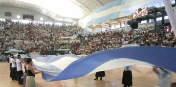“Suuube, suuube, suuube, bandera del amor”, cantaban 7.000 niños a coro y el estadio Aldo Cantoni retumbaba mientras izaban la bandera. El mismo estadio, como no se vio siquiera en sus mejores galas deportivas, estuvo vestido con los colores argentino. El acto de cierre de las colonias de verano 2012 ayer fue un verdadero festival del celeste y blanco, en el día del Bicentenario de la Creación de la Bandera Argentina. Los más de 7.000 chicos integrantes de las colonias de distintos departamentos alentaron desde las tribunas a sus pares, que protagonizaron distintos cuadros y los entretuvieron por más de una hora.