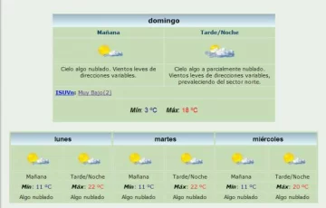Para el lunes la temperatura no variará mucho ya que está previsto que supere los 20 grados, alcanzando los 22 de máxima. El cuelo estará algo nublado y la mínima prevista por el SMN es de 11 grados.