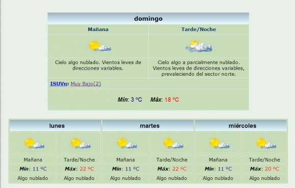 San Juan 9 de Junio.- El Servicio Meteorológico Nacional pronostica para la jornada de hoy un día cálido con una máxima prevista de 18 grados con el cielo parcialmente nublado y vientos leves de direcciones variables.