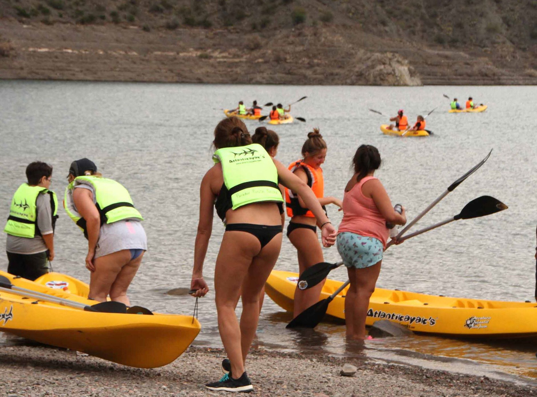 Invasión amarilla. En plena siesta, suele haber más de una veintena de kayak en el espejo de agua. Es una postal imperdible y una actividad para no perderse.