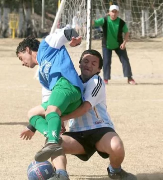El 6 de Aleluya estaba sentado en la cancha de fútbol con el pasto todavía deambulando a su alrededor por el arrastrón. Con los pies extendidos, los tapones brillantes, sus palmas hacia arriba y con cara de "no lo toqué", le reclamaba al árbitro que no cobrara la evidente falta mientras su víctima se sobaba. Esta postal de cualquier partido de cualquier barrio se vivió en el torneo de la Primera Liga de Fútbol Especial, que arrancó el viernes pasado. Los encuentros se realizan en el camping del Sindicato Empleados de Comercio, en Rawson. Pero se viven en la cancha, con los ceños fruncidos, los gritos y los abrazos de gol.
