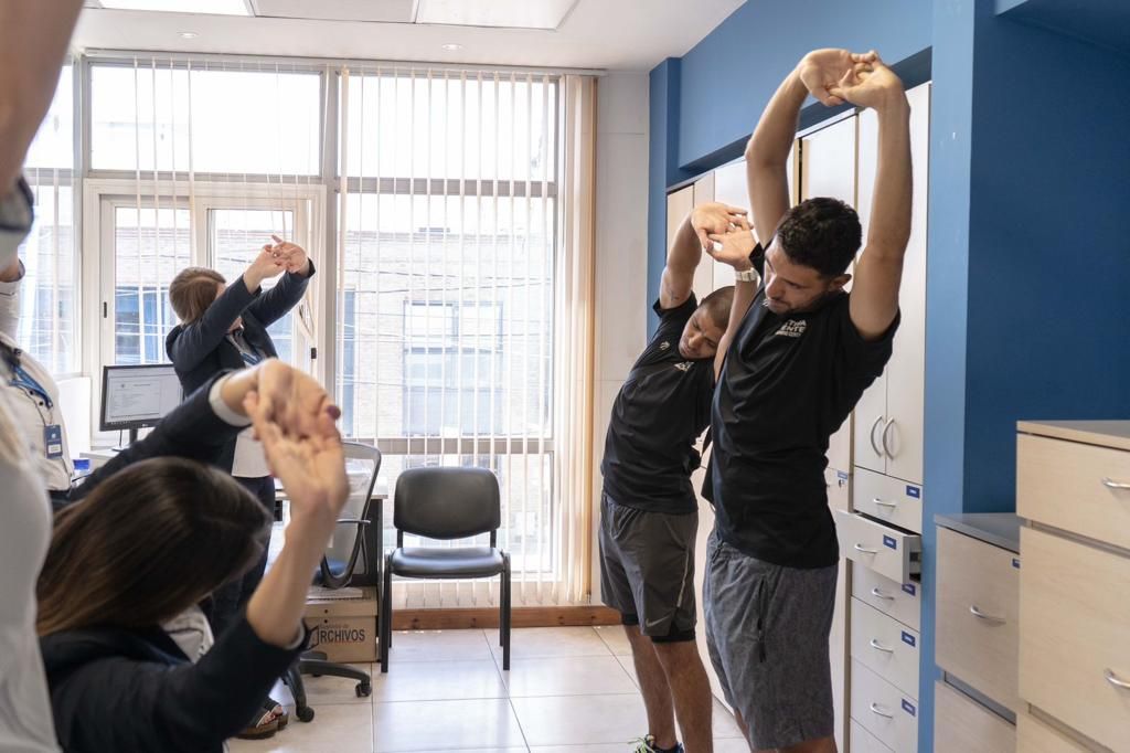 Con esas estadísticas se puede conocer datos de sobrepeso u obesidad de los emplados, incluso con algunas empresas ya lograron que les otorguen viandas saludables para los que almuercen en los lugares de trabajo. ¿Cómo es la metología de trabajo entre la empresa y el gimnasio? Hay dos formas de acceder al programa, que los integrantes de la empresa entrenen en algunas de las tres sedes del gimnasio o que se entrenen en el mismo lugar de trabajo, al inicio o la término de la jornada laboral. "Trabajamos programa de flexibilidad, movilidad y un circuito de Funcional. Por lo general los empleados de las empresas que nos contratan están en oficinas mucho tiempo sentados entonces ejercicios así son fundamentales para todos", expresaron los profes.