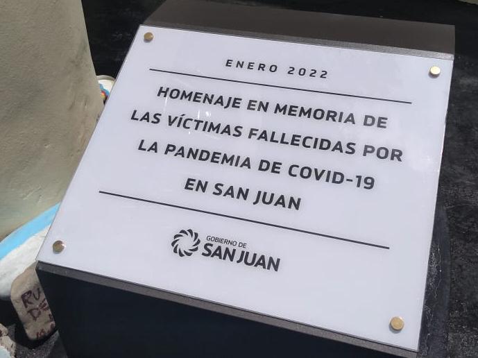 Y junto a ese recordatorio quedó inaugurada además la placa en memoria de los fallecidos por covid en San Juan desde el inicio de pandemia, en la misma esquina de Casa de Gobierno.