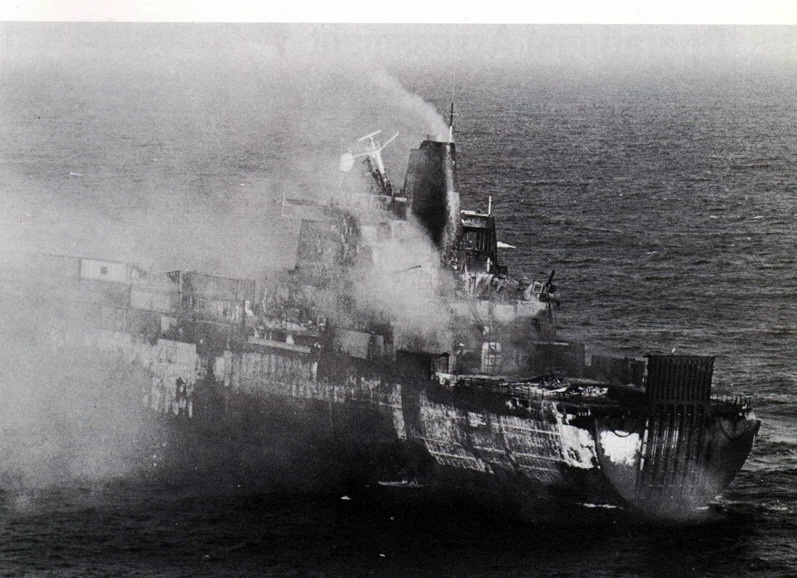 El Atlantic Conveyor era un eco más grande que el portaaviones de 212 metros de eslora y toda una pared de contenedores‘. ¿Y como se enteraron que era el Atlantic Conveyor? ‘A la noche, por la BBC‘, respondió Curilovic.