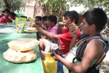 La batahola que generan los niños corriendo, chapoteando, gritando y saltando se detiene en seco. El silencio gana el camping y sólo se escucha algunos aplausos aislados cuando las conservadoras comienzan a recorrer las mesas. Después, sólo se ve bocas llenas y brindis con sachés de jugo. Así pasan los mediodías los niños que asisten a una de las colonias de vacaciones, quienes agradecen el almuerzo que les sirven para renovar las energías perdidas a lo largo de la mañana.
