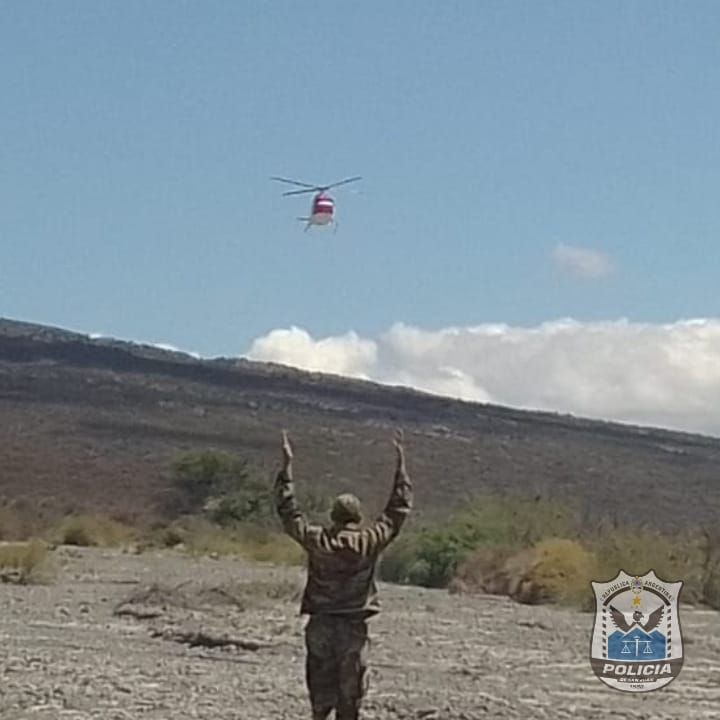 Estaba junto a su mula, que se había empacado y no quería seguir, y también tenía a su perrita marrón que no dejó de seguirlo desde que salió de su casa. En el momento que lo vieron, los expertos gritaron y en cuestión de minutos, ya estaba un helicóptero trasladándolo al Hospital Rawson. Antes de subir y emprender vuelo, pidió que cuidaran de sus animales. Durante el viaje no dejó de hablar y mucho menos preguntar por su papá.
