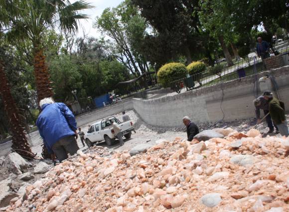La isla, que fue construida en 1998, ya no tendrá ripio y piedras y un predominante color marrón. Pronto ofrecerá un particular color rosáceo, que se lo darán piedras de cuarzo donadas por una cantera de Valle Fértil, según informó Roberto García, director del Obrador de la Dirección de Arquitectura, que tiene a su cargo la limpieza. Además, pondrán más farolas y todo el sector se podrá ver mejor ya que podaron los árboles de la isla.