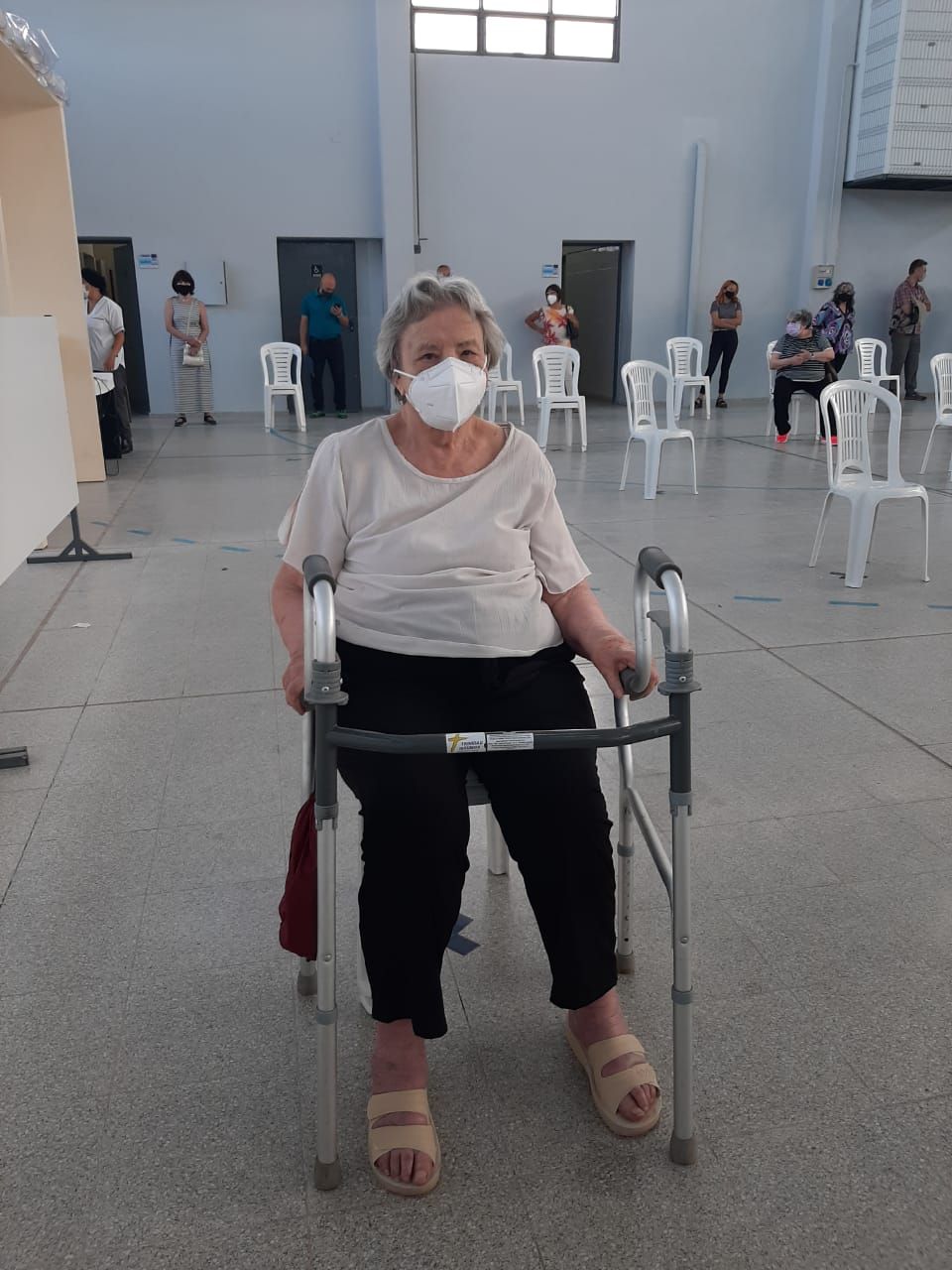 Con 91 años de edad, Nélida Leiva fue una de las primeras mujeres mayores de 80 años en vacunarse contra el coronavirus en la Capital sanjuanina, más precisamente en el Polideportivo de la Escuela San Martín.