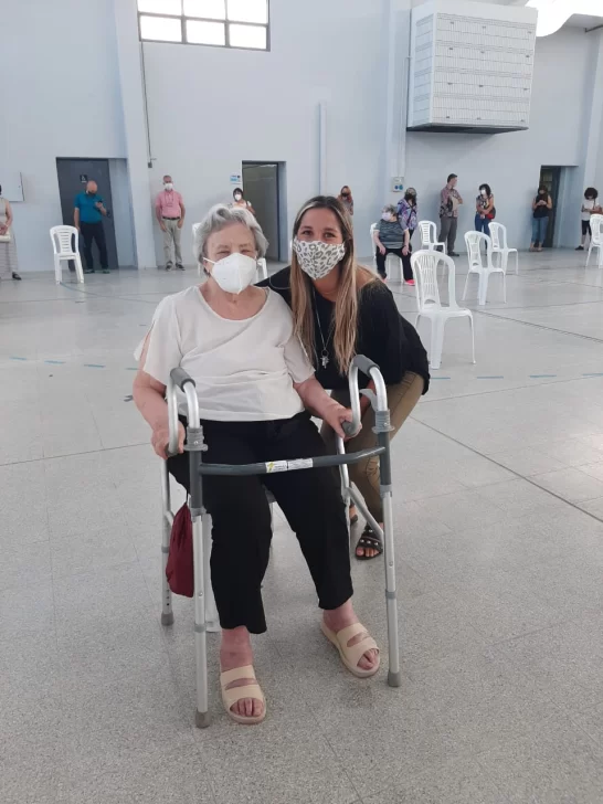Desde que se bajó el auto hasta que salió del centro vauncatorio fue asistida por su nieta Florencia, quien fue la acompañante durante todo el proceso. "Mi nieta me ayuda en todo, ella me acompaña y me pregunta todo el tiempo si necesito algo, es muy bueno que permitan que venga alguien de la familia con el que uno tenga confianza y se sienta seguro", indicó Nélida.