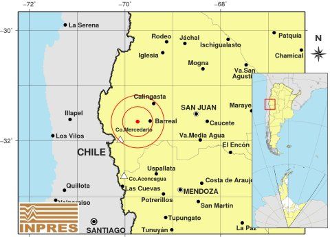 La Intensidad fue de III en la localidad sanjuanina Barreal y de II a III en Uspallata, en Mendoza, y en la Ciudad de San Juan.