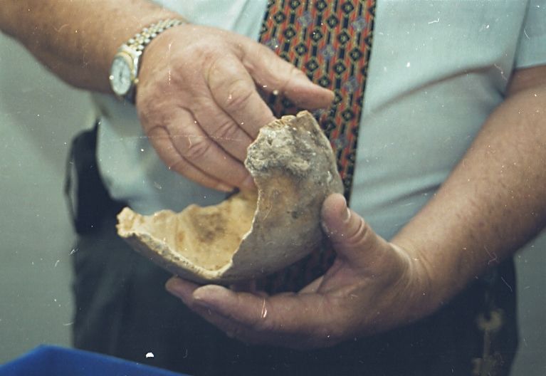 Parte de uno de los cráneas encontrados en la vereda de la Catedral.