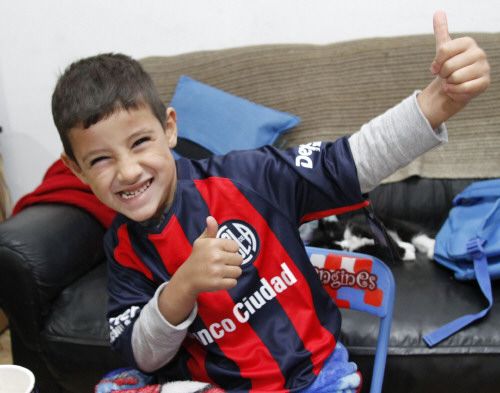 A dos días de que Benjamín Sánchez fuera encontrado en el medio de El Salado, en Albardón, el niño sigue recibiendo regalos y mimos de su familia y amigos. Ayer, en compañía de su mamá (ver aparte), que lo sigue a sol y sombra, el nene se encontró con DIARIO DE CUYO y recibió su primera camiseta de San Lorenzo. El chico, que hasta delante de medios nacionales dijo ser hincha del azulgrana a pesar de que su familia entera es de River, abrió las puertas de su casa. En este contexto, Andrea Quiroga, la mamá de Benja, comentó que paulatinamente la familia busca volver a su vida normal.