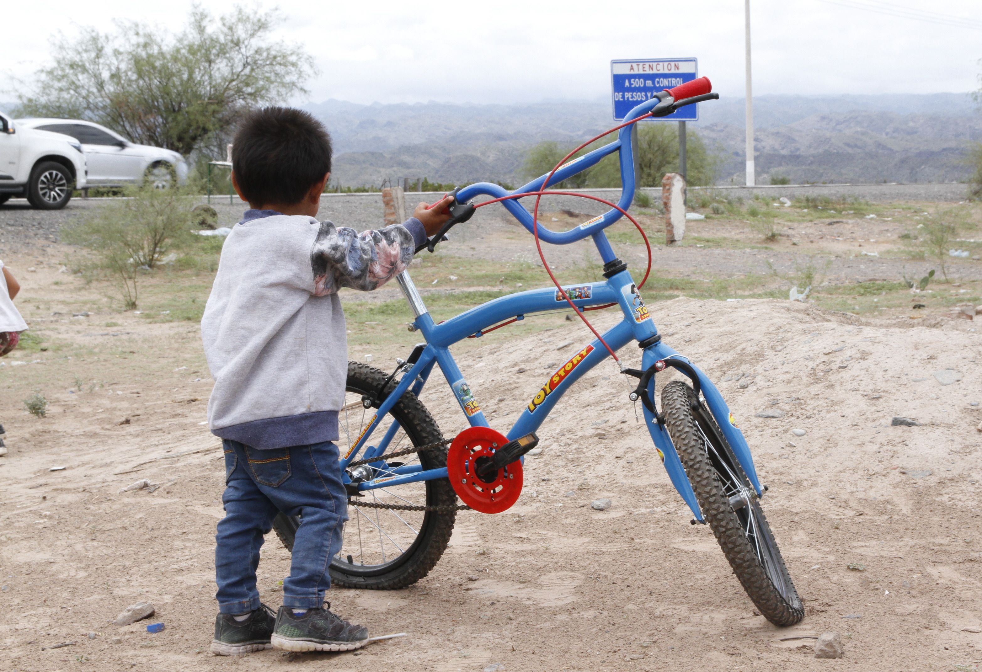 No supo que lo fotografiaron, menos que su imagen iba a aparecer en DIARIO DE CUYO y que terminaría por conmover a los lectores. Gracias a esta trascendencia recibió un regalo inesperado. Se trata de Ulises Agüero, de dos años, que vive con su humilde familia en la zona del Control Fiscal, en pleno desierto caucetero. Su foto fue publicada en la edición impresa de este medio el domingo pasado, en una de las notas sobre la Vuelta a San Juan 2020 que llegó hasta la Difunta Correa. Ulises sale posando junto a una vieja bicicleta, mientras mira detenidamente al pelotón que pasa a toda velocidad por la Ruta 141, sin percatarse de que uno de los fotógrafos de este diario inmortalizó ese instante. Gracias a esto le regalaron una bicicleta 0 km. Fue el diputado nacional Walberto Allende, quien llegó de sorpresa hasta la casa del nene para entregarle el regalo personalmente.
