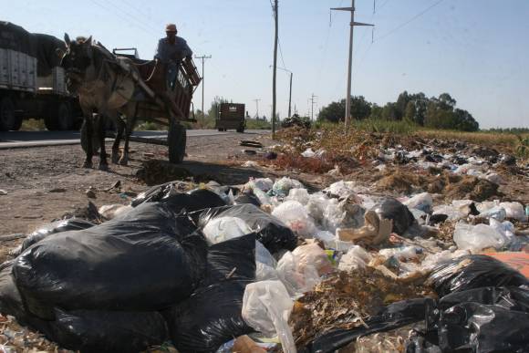 Este lugar es de mucho tránsito porque en las inmediaciones están los barrios Fanzolato, Amecom y casas residenciales en la zona rural. Esa zona son fincas que están en desnivel respecto de la calle y por eso la gente que vive allí encontró en la basura una forma de rellenar el terreno.