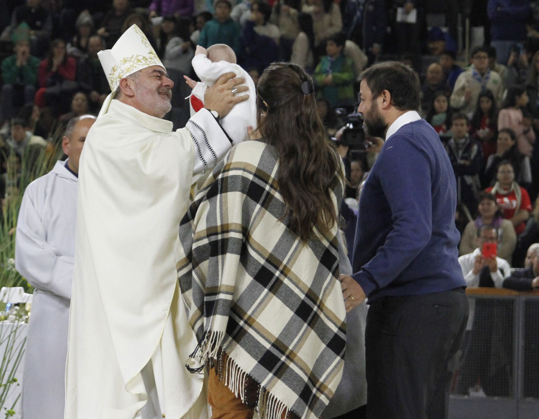 La emoción también tuvo un espacio destacado durante el evento. Se hizo presente por primera vez cuando todos los obispos le dieron un fuerte abrazo a Domínguez para felicitarlo por su nuevo puesto. El segundo momento emotivo fue cuando el nuevo obispo recibió a sus familiares que acercaron las ofrendas. La gente se puso nuevamente de pie para aplaudirlo.