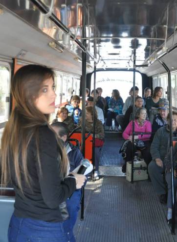 El funcionario también agregó que en el último viaje que se realizó el domingo pasado, se incorporó el sonido en el colectivo. De esta manera, Vanesa Céspedes, excandidata a Reina Nacional del Sol por Rawson y actual Reina Nacional de la Uva y el Vino, ahora puede usar el micrófono para dirigirse a los paseantes. Ella es la guía del tour.