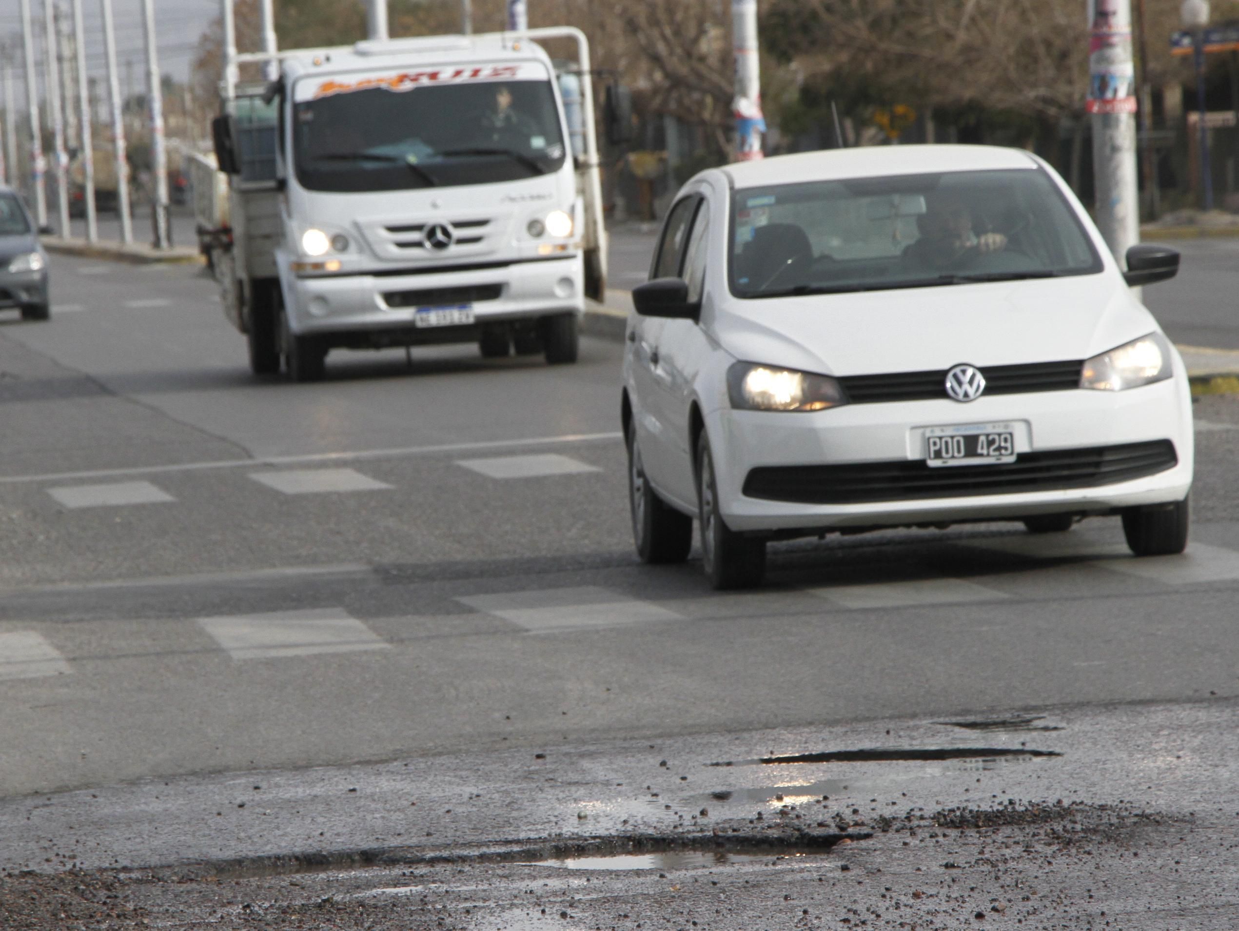 El pozo abarca casi todo el ancho del carril sur de calle 5, con una profundidad mayor en la zona del centro. Y como está lleno de agua no se ve a simple vista y esta condición lo vuelve más peligroso. "De lejos parece un charquito de agua, recién lo ves bien cuando estás encima. Por eso a cada ratito se sienten las frenadas de los autos y algunos golpes de los que no pudieron esquivarlo", dijo Gustavo Gordillo, vecino del lugar.