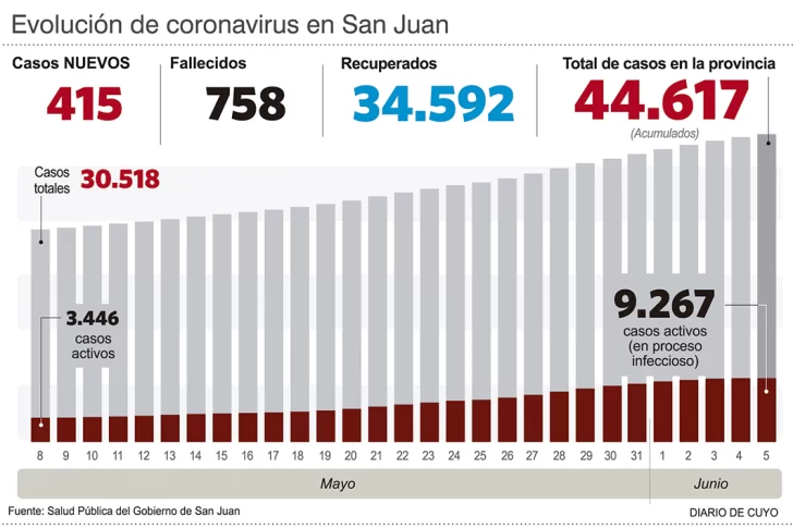 Al borde de igualar la jornada más negra en pandemia, el Ministerio de Salud Pública informó ayer que hubo 14 personas fallecidas por covid. Apenas un deceso menos que aquel récord y el mismo dolor. Entre las víctimas está un joven de apenas 26 años, de Capital e internado en el hospital de Albardón. De esta manera, el total de fallecidos en pandemia ahora asciende a 758.
