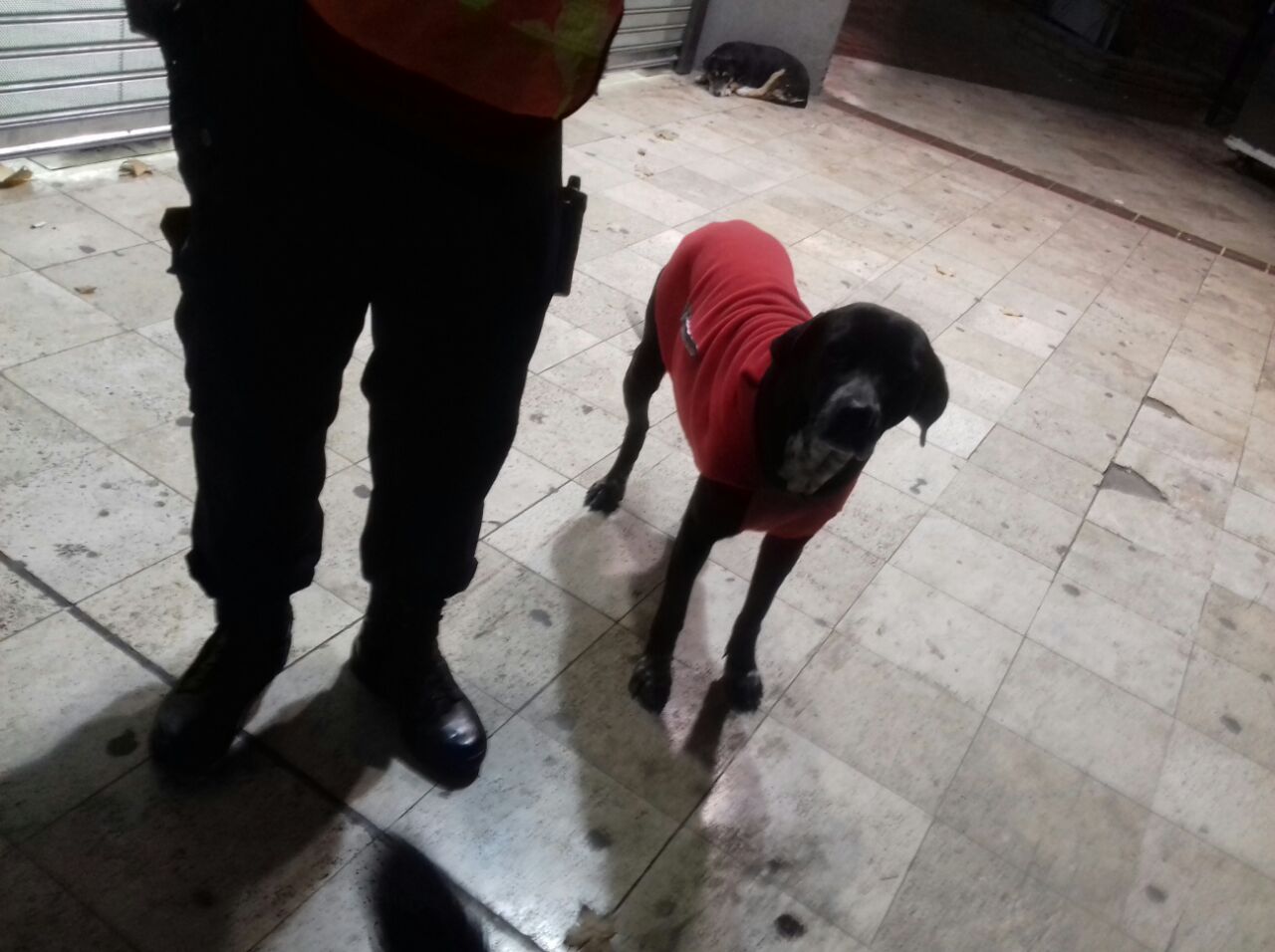 Cuando el deber lo convoca a hacer guardia en Tucumán y Laprida, en el ingreso a la Peatonal, se une con otras personas para comprar alimentos y así poder darles de comer a los perros callejeros de la zona. Pero no solo es eso, sino que también colabora con ropa y diversos atuendos para proteger a los animales del intenso frío.
