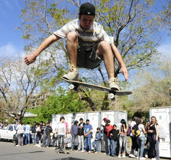 La pista de skate fue sin duda uno de los atractivos más importante de las inmediaciones del Parque. Sobre calle San Luis, cinco rampas formaron una gran pista en donde los expertos hicieron cientos de piruetas, mientras que los skaters principiantes los admiraron y trataron de copiar cada gesto sobre el skate. La mayoría de la gente que caminó por esa zona se detuvo unos minutos para admirar la destreza de los jóvenes extremos. En tanto, en el centro de la plaza España una palestra fue la culpable de una larga cola de niños que soñó con ser escaladores por unos minutos. Los gritos de aliento de los amiguitos que miraban desde suelo, hicieron que los más pequeños treparan como si fueran arañas. Así, los niños que fueron guiados por personal del Club Andino Mercedario, tuvieron una experiencia inolvidable sobre la improvisada montaña.