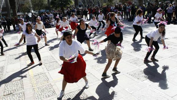 Casi sin pausa, el centro de la plaza lo ganaron Alex y Martín, de la Escuela Municipal de Arte, que bailaron hip hop y arrancaron los gritos de las chicas por sus pasos que parecían cargados de electricidad. Y ahí nomás explotó la alegría cuando los estudiantes del instituto Juan Garro, invitados de Córdoba, hicieron la historia del cuarteto, en la que no faltaron el legendario grupo Paso Doble, la Mona Jiménez y Rodrigo.