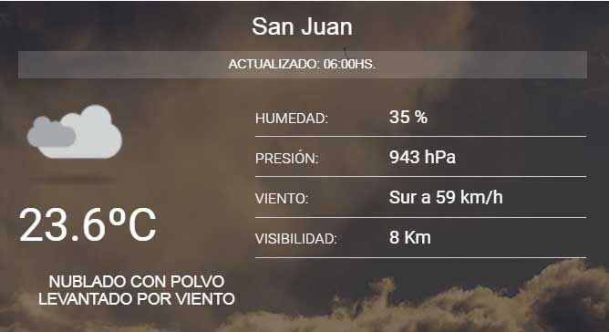El Servicio Meteorológico Nacional y Protección Civil habían emitido un alerta por fuertes vientos con ráfagas y finalmente a las 5 de la mañana de este lunes el pronóstico se cumplió. Según el registro de las 6 de la mañana, la velocidad del viento Sur alcanzaba los 59 kilómetros por ora reduciendo la visibilidad a sólo 8 kilómetros.