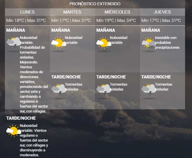 Desde mañana y hasta el jueves se esperan jornadas con temperaturas máximas que rondarán entre los 31 y 34 grados con tormentas aisladas.