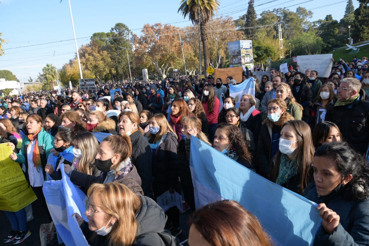 La cantidad de personas que participan de este airado reclamo es importante. Una columna nutrida que ocupa toda calle Las Heras, dese Libertador y Central. Pero la magnitud de la convocatoria se vio en pleno cuando marcharon por Libertador y llegaban a ocupar 5 cuadras.