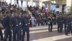 San Juah.- En la Plaza Seca del Centro Cívico se realizó el tradicional relevo de la guardia que custodia la Bandera Ciudadana de la IV División del Ejército de Los Andes “Teniente Coronel Juan Manuel Cabot”.
