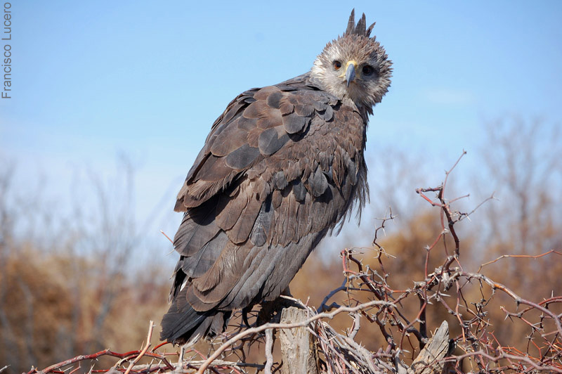 El Águila Coronada (Harpyhaliaetus coronatus) se encuentra catalogada como especie en Peligro de Extinción según su estatus internacional y nacional. Se trata de un ave de gran tamaño, generalmente solitaria. Su vuelo es majestuoso y alterna aleteos con planeos. Se alimenta de una gran variedad de presas como armadillos, reptiles, zorrinos, comadrejas, aves y ocasionalmente carroña. Habita en el Sudeste de la provincia, en la provincia fitogeográfica del Monte, en particular en bosques maduros con árboles de gran tamaño.