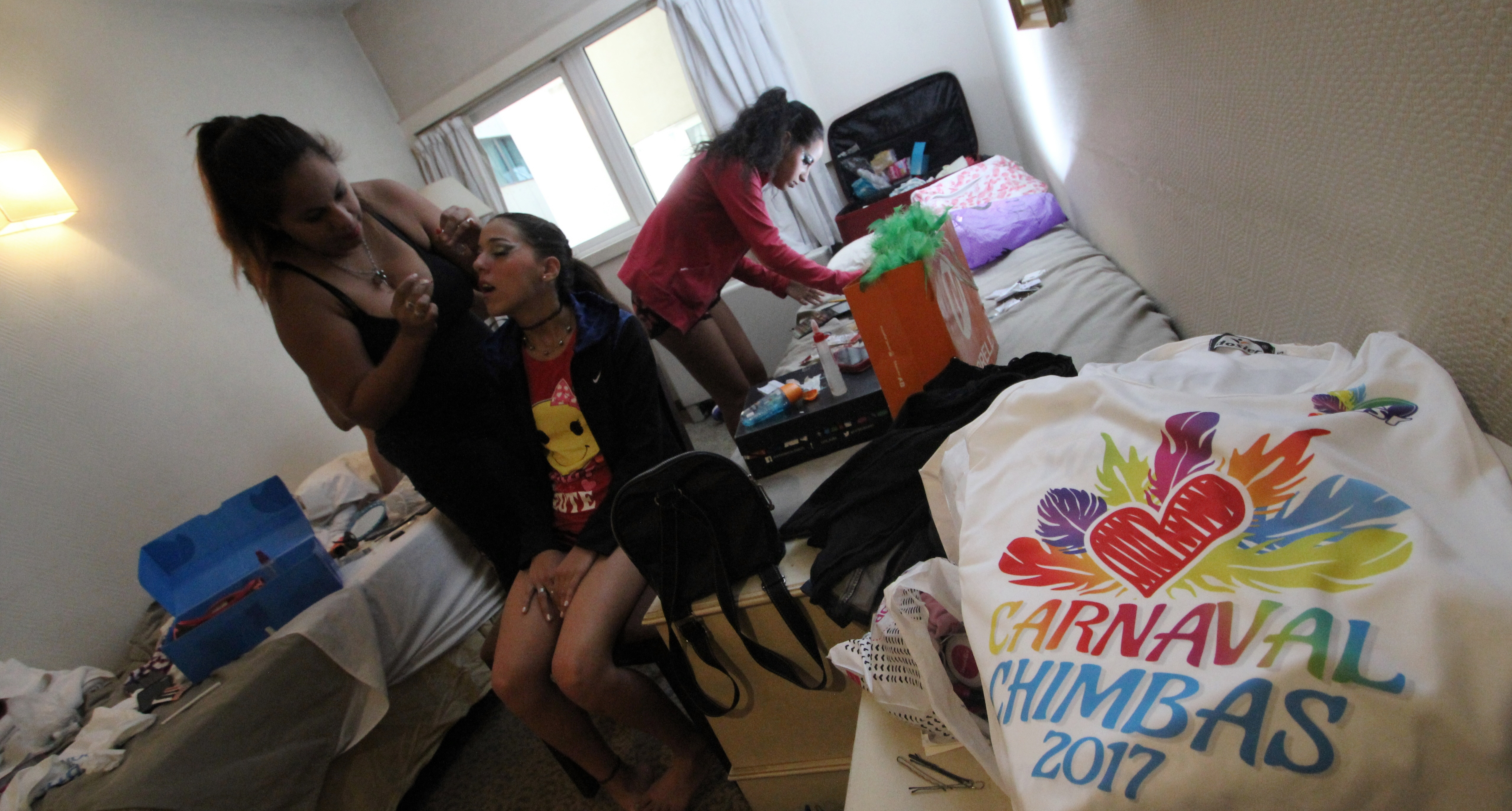 En silencio absoluto y sólo consultando qué color era el indicado para los ojos o los labios las pasistas comenzaron a maquillarse y peinarse. La habitación 319 se convirtió en camarín. Los bolsos con sombras para los ojos, de colores bien estridentes, y el rímel para darle más volumen a las pestañas postizas fueron lo más usado por las chicas que quisieron estar bellísimas para la presentación de ayer en el Obelisco. Así, con una mezcla de nervios, ansiedad y alegría las pasistas vivieron la previa del show que dieron en Buenos Aires.