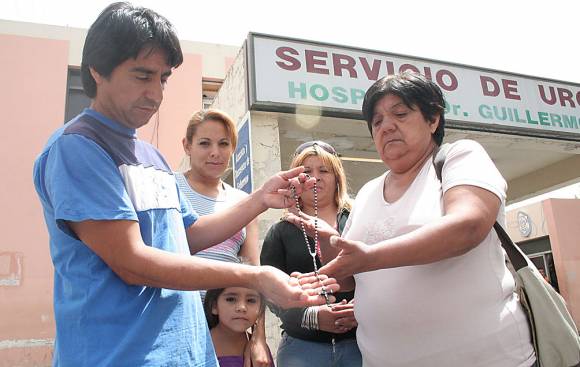 "¿Y de verdad es tan milagroso?", preguntaba María, una tía de Alberto Frassón, de 33 años, quien ingresó el sábado pasado a Terapia Intensiva del Hospital Rawson por un choque que sufrió en su moto. "Totalmente, sólo récele y tenga fe", contestaba Dante minutos antes de trasladar a su hijo a su casa porque le daban el alta después de haber estado 27 días muy grave por un accidente en auto. La historia volvió a repetirse. Una persona que tuvo a un familiar muy grave en la terapia entregó el rosario milagroso a otra que tiene a un ser querido en la misma sala. Y lo dio porque su accidentado se salvó y el crucifijo salvará también al que esté grave aún.