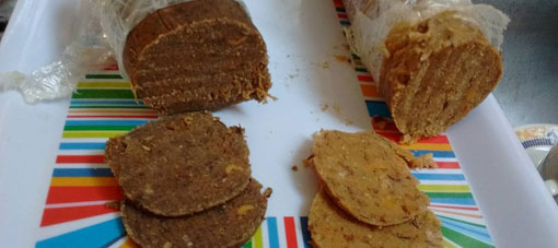 Según comentó Alejandra, la base de las preparaciones son las semillas, las verduras y la fécula de maíz, combinadas con el uso de gran variedad de condimentos. El salame, por ejemplo, se realiza con porotos rojos y tomates secos. Por su parte, el morcillón contiene porotos negros y arroz. Mientras que, el salchichón primavera se prepara con porotos rojos y verduras y los quesos, con papa y tofu.
