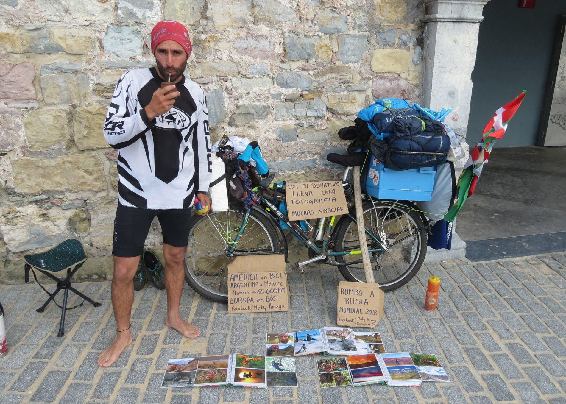 Hizo memoria de un par de semanas y continuó: "República Checa también es linda por su gente. Una familia me invitó a su casa por 7 días y después viajaron conmigo 4 días en bici. Me encantó". Aunque de esas hay muchas: "Gente de España Francia, Brasil, Argentina, Italia. República Checa y Polonia han viajado conmigo aquí en Europa". En Italia están los dos récords: "Una familia en Roma me hospedó en su casa por 2 meses, donde pude imprimir mi libro. Y en Bologna, Giusepe, de 66 años, viajó 25 días conmigo por el sur de Italia".