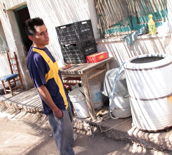 ‘En eso, la mamá del Ima lo mandó a dejar en la mesa de afuera un zapato de la otra niña, Ana Paula, que se lo había ensuciado con barro. Quería que se secara para poder ir al Parque a festejar la Primavera. En eso sentimos un ruido y ahí nomás lo vimos entrar a Ismael, lleno de sangre. No gritaba, no lloraba, no decía nada. Fue desesperante, todos empezamos a gritar’, relató el hombre (en la imagen, junto al secarropas, tapado con un fuentón).