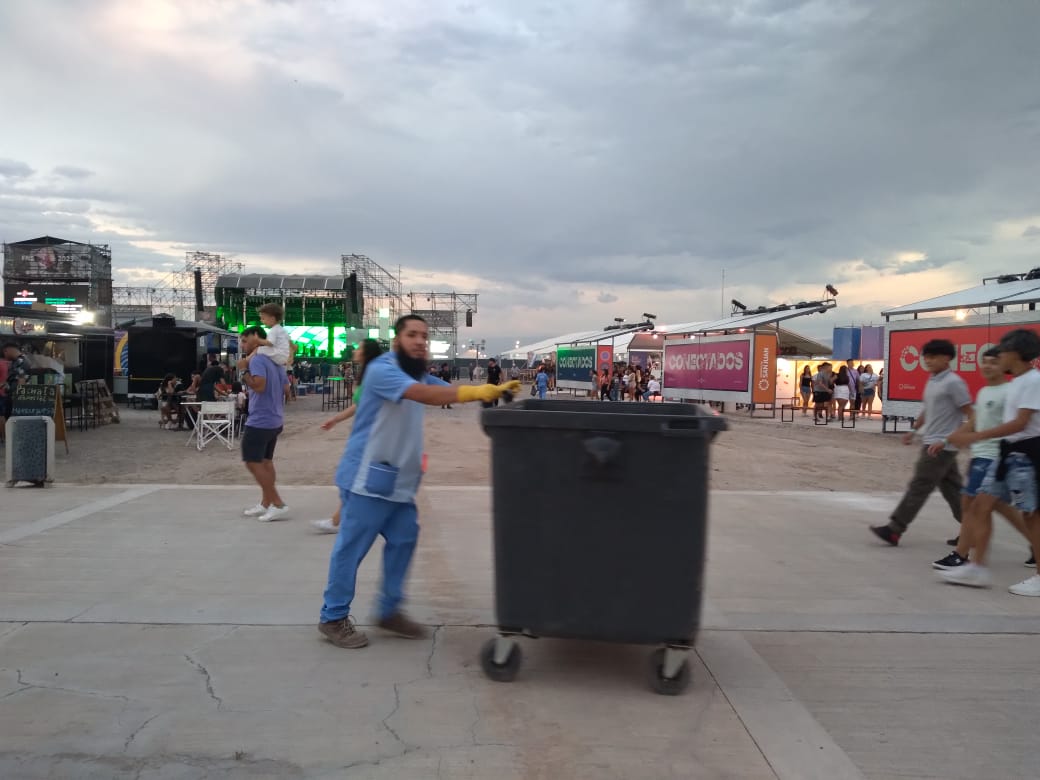 Arrancan desde muy temprano. Dieciseis horas de trabajo que vale la pena destacar. En cada rincón del enorme predio donde se realiza la Fiesta Nacional del Sol se ven los empleados de limpieza levantando cada papel del suelo, para que el Predio Costanera luzca impecable en cada noche.