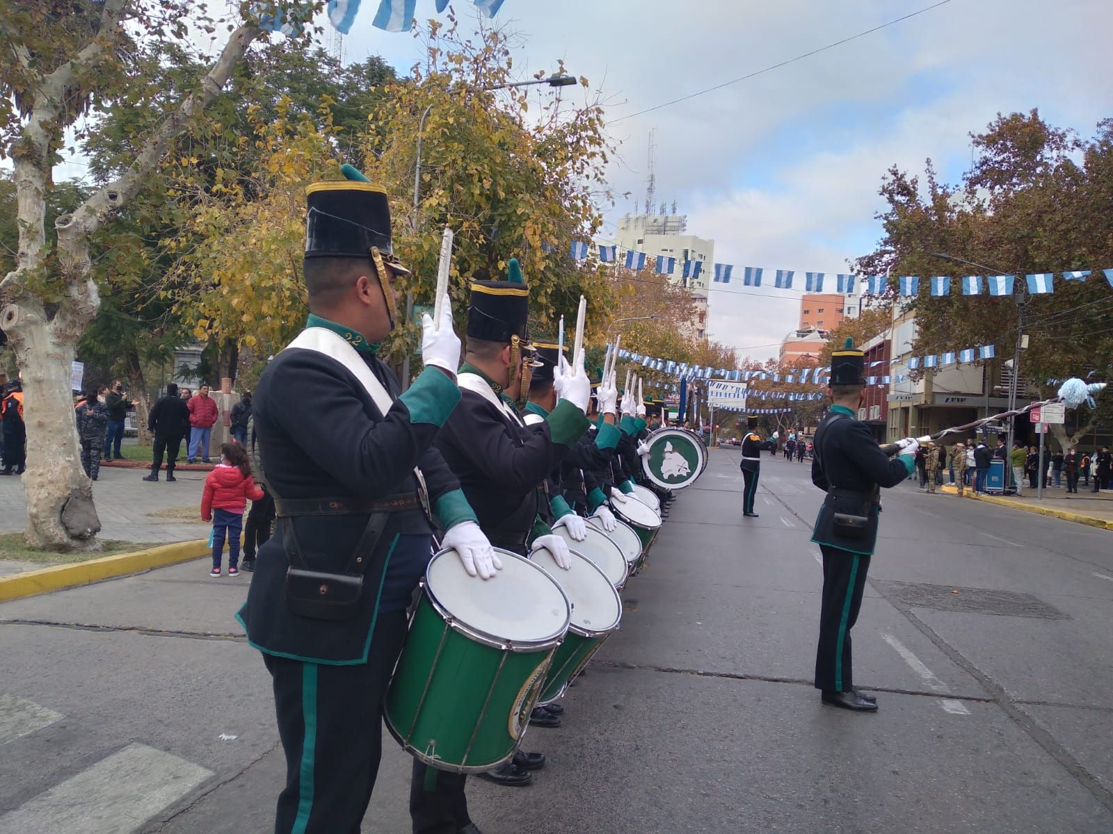 Pese a que la jornada se presentó fría, varios sanjuaninos llegaron a la Plaza 25 para no perderse a la Banda de Música de la Policía de San Juan  como también a la formación de Patricios.