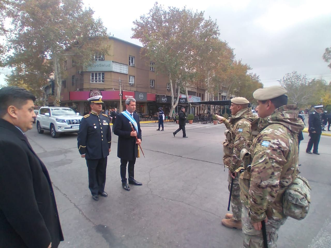 El primer mandatario provincial cumplió con el protocolo frente a las fuerzas de seguridad.