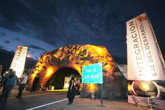 El ingreso a través de la estructura marrón que representa la montaña está precedido por un cartel de tránsito de color verde que reza "Túnel de Agua Negra". Adentro, las líneas de demarcación horizontal típicas de una ruta indican el camino para recorrerlo. Y en las orillas las luces que iluminan desde el piso el sector cubierto por un techo negro están rodeadas de piedras. La postal ofrece una idea sobre cómo será el anhelado paso, que unirá ambos países y que servirá para hacer más fluida la exportación de toda Sudamérica.