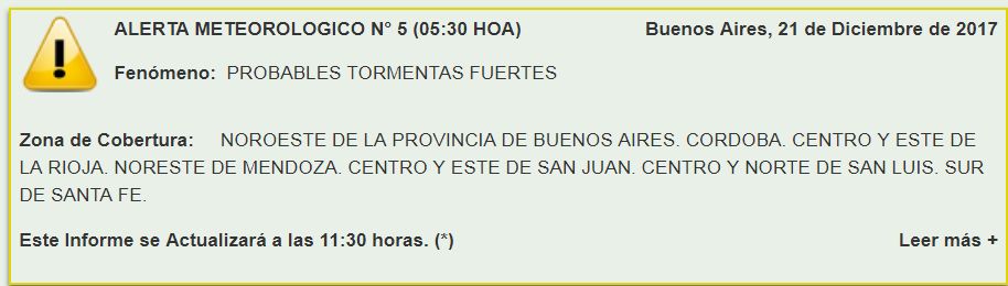 Según el informe del Servicio Meteorológico Nacional el inicio del verano llegará acompañado de  tormentas, algunas de ellas fuertes, en buena parte del territorio provincial.
